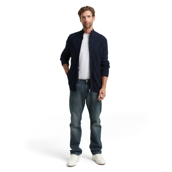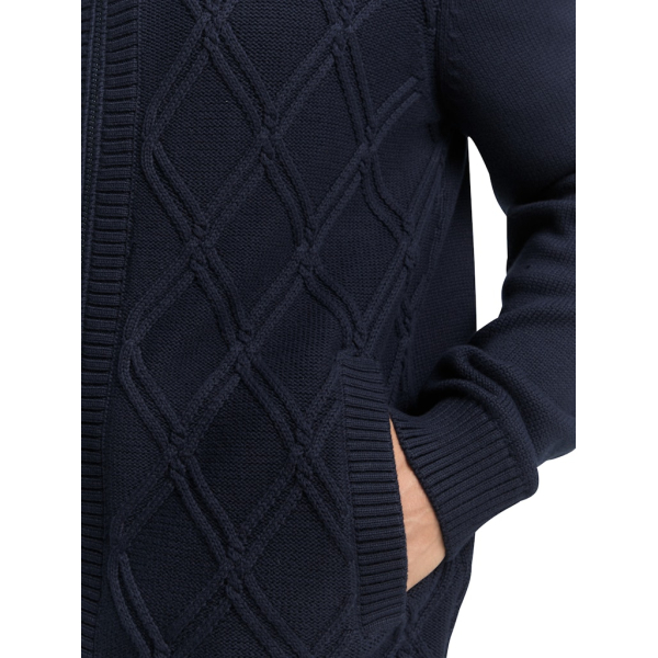 Dit vest van Tom Tailor met opstaande kraag en ritssluiting heeft een kabelpatroon aan de voorkant, steekzakken en een logo badge op de mouw.