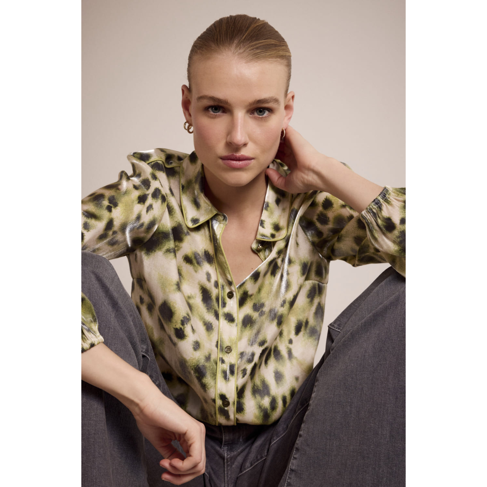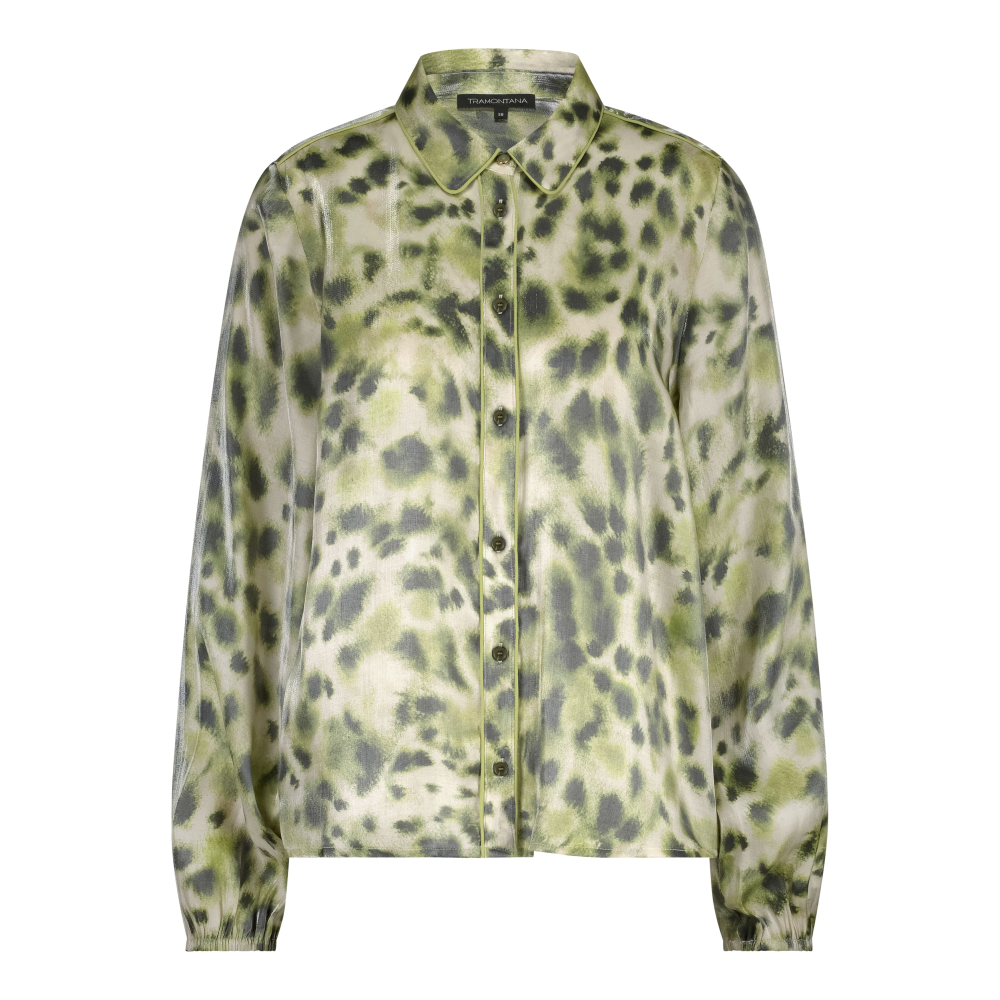 Een stijlvolle blouse van Tramontana met een luxe uitstraling dankzij de subtiele glans. De grafische print in groentinten geeft de blouse een speels maar chic karakter. Een perfecte top om kleur en persoonlijkheid toe te voegen aan je look.
