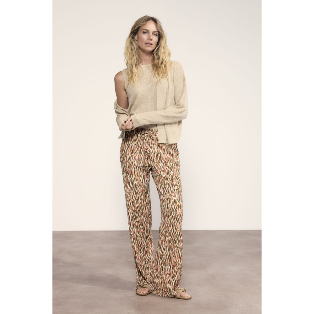 Deze gestructureerde broek met animal print van Tramontana heeft een krachtige uitstraling en een verfijnd silhouet. De elastische tailleband met strikkoord en wijde broekspijpen bieden extra comfort en zorgen voor een moderne, effortless look.