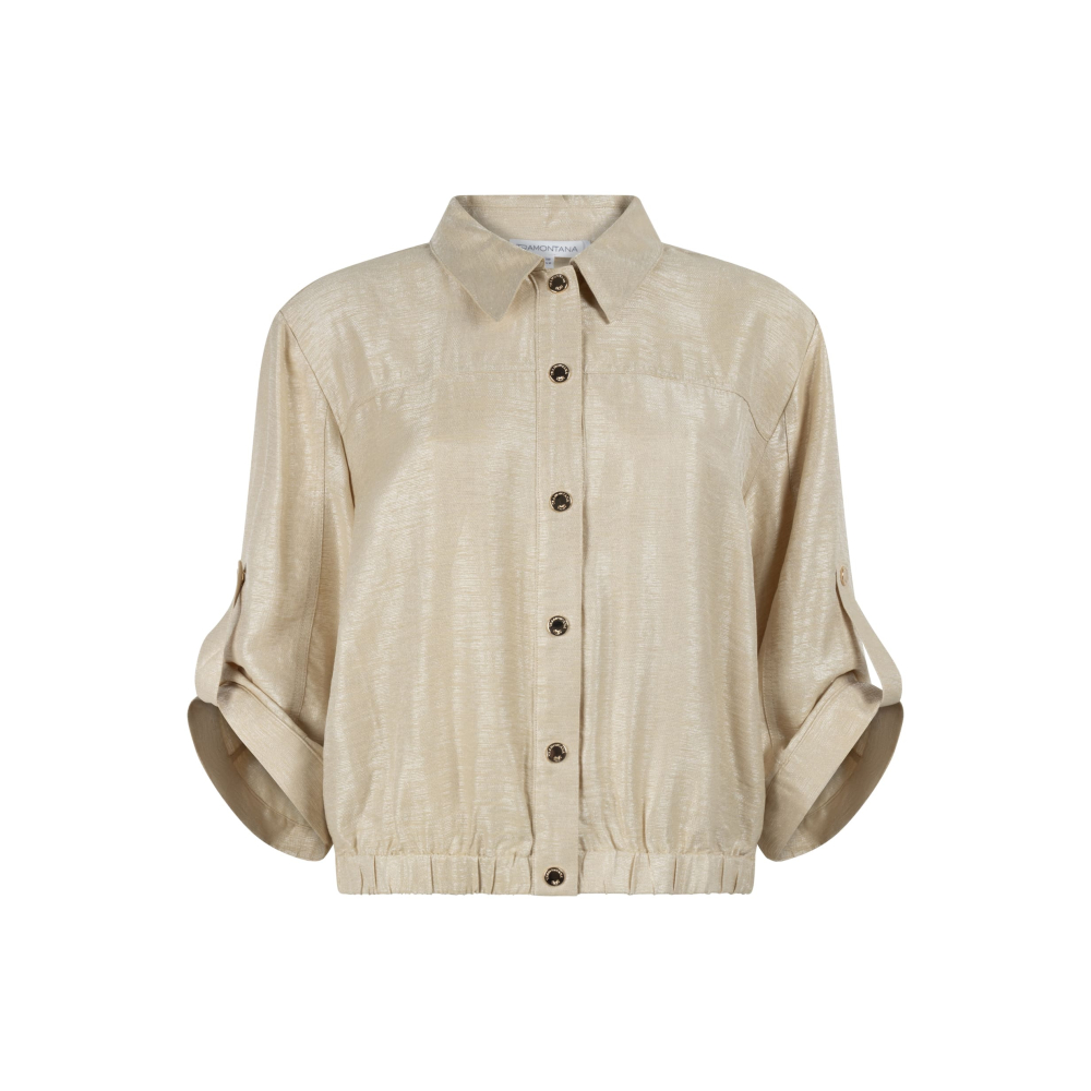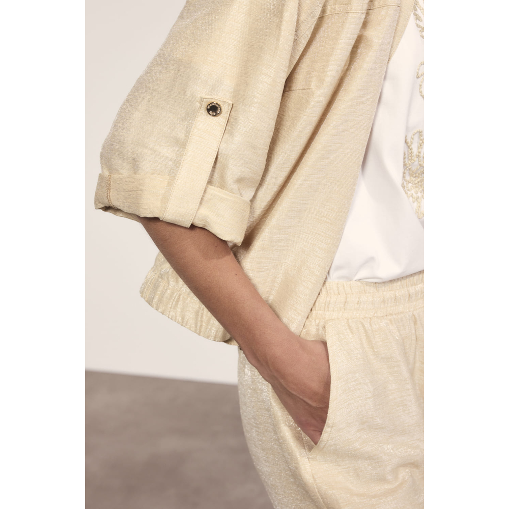Dit Tramontana jasje met een lichte glans is een verfijnd en vrouwelijk statement piece. De roll-up mouwen, blousekraag en elastische taille zorgen voor een moderne en eigentijdse look. Gemaakt van 85% viscose en 15% polyamide Kleur : Pebble