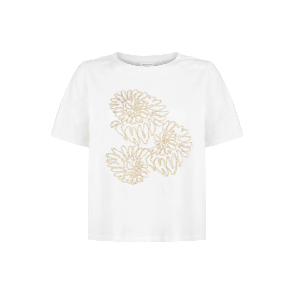 De borduursels op dit T-shirt van Tramontana geven het een stijlvolle en modieuze uitstraling. Combineer met een jeans of casual broek voor een trendy everyday look! Gemaakt van 95% katoen en 5% elastaan Kleur : Off White