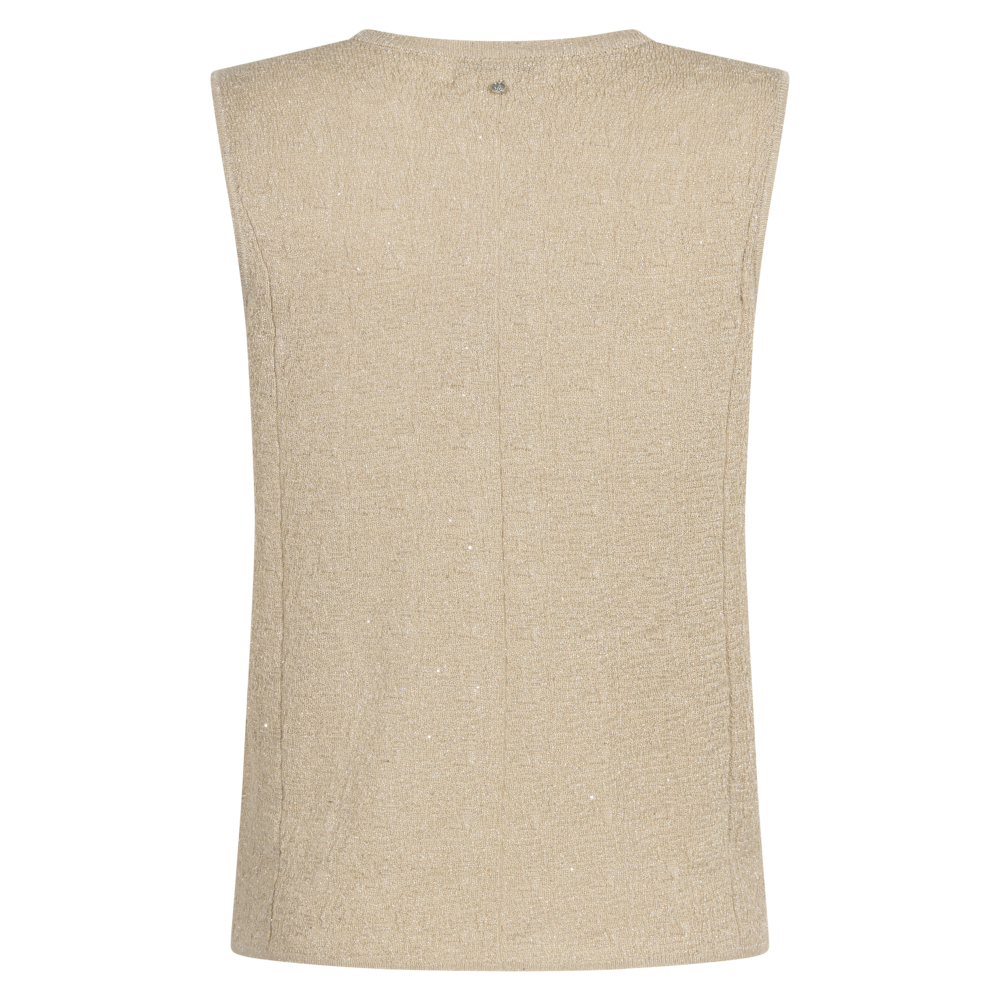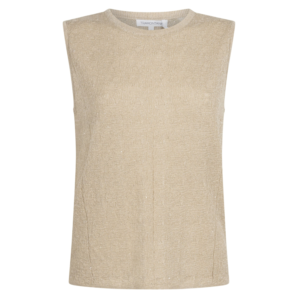 Sprankelende mouwloze trui top van Tramontana met subtiele pailletten waardoor deze top een echte feel good vibe heeft. Gemaakt van 90% viscose en 10% metaalvezels Kleur : Pebble