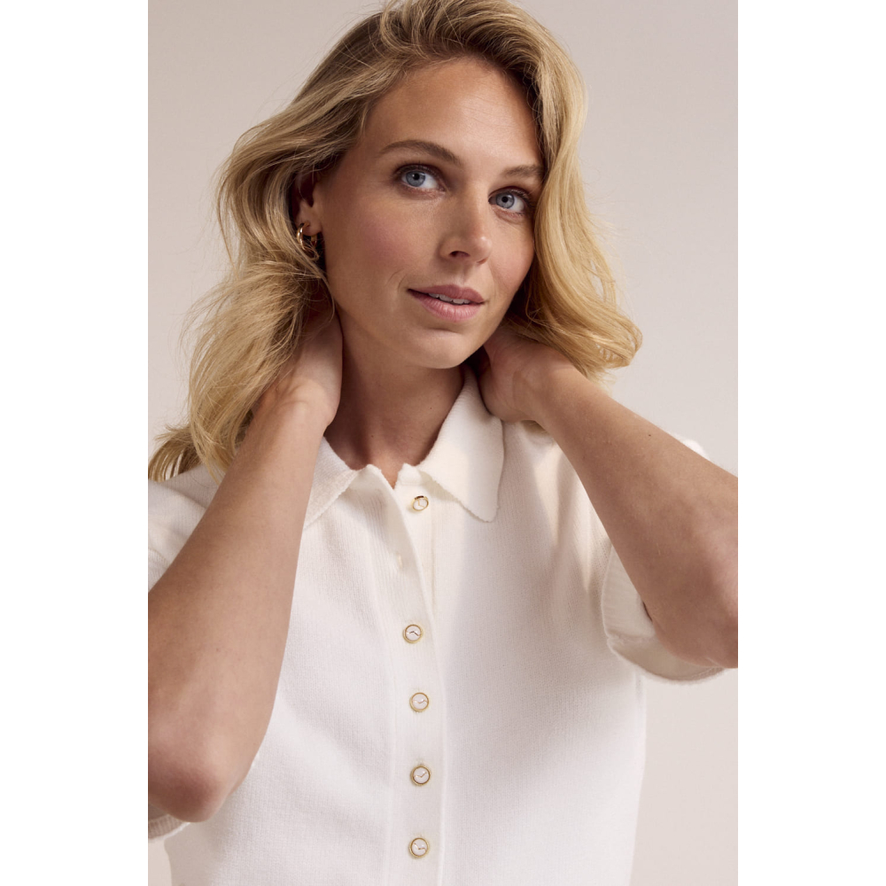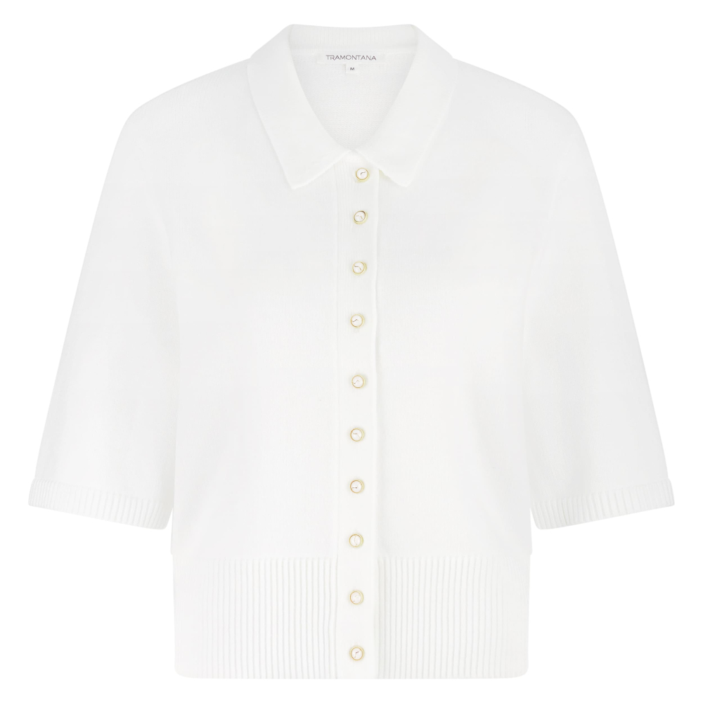 Een tijdloos en elegant vest van Tramontana met een verfijnde uitstraling dat moeiteloos comfort en stijl combineert. De klassieke kraag geeft het ontwerp een chique, vrouwelijke touch, terwijl de knoopsluiting aan de voorzijde zorgt voor een elegante en veelzijdige look. De halflange mouwen en ribgebreide boorden zorgen voor een subtiele, moderne afwerking en maken dit vest perfect voor zowel het voor- als najaar. Een veelzijdig vestje dat niet mag ontbreken in een tijdloze garderobe.
