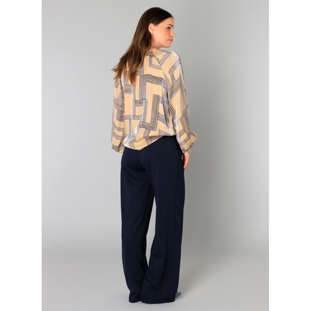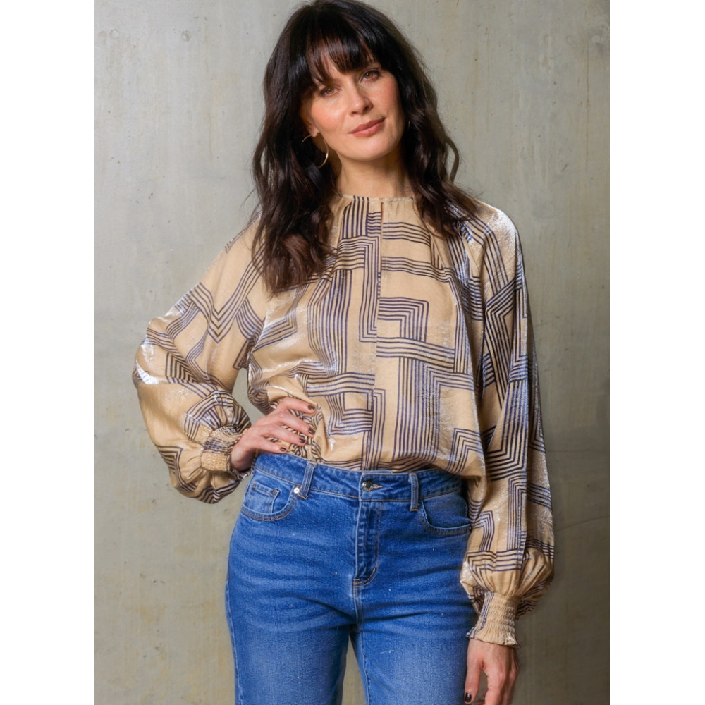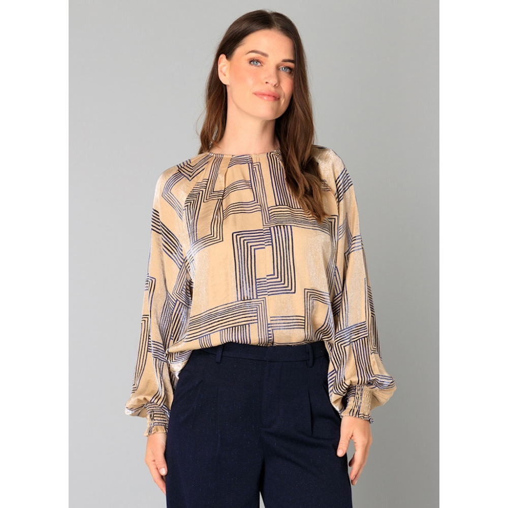 Deze blouse van Yest valt op door het mooie glanzende effect en stijlvolle patroon. De gesmockte manchetten geven een zachte, vrouwelijke touch en het knoopje achter in de nek zorgt voor een elegante afwerking. Een blouse die je makkelijk iedere dag draagt, maar ook perfect is voor speciale gelegenheden.