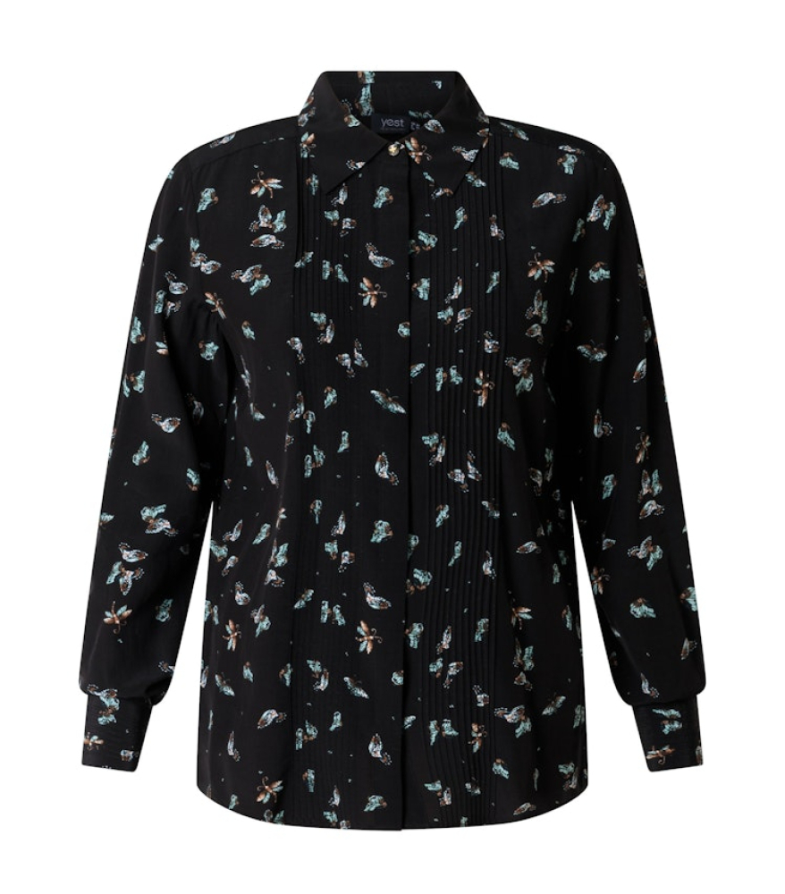 Deze blouse van Yest combineert comfort en stijl en is voorzien van een vlinderprint, platte plooien op de voorzijde en manchetten die mooi zijn afgewerkt.