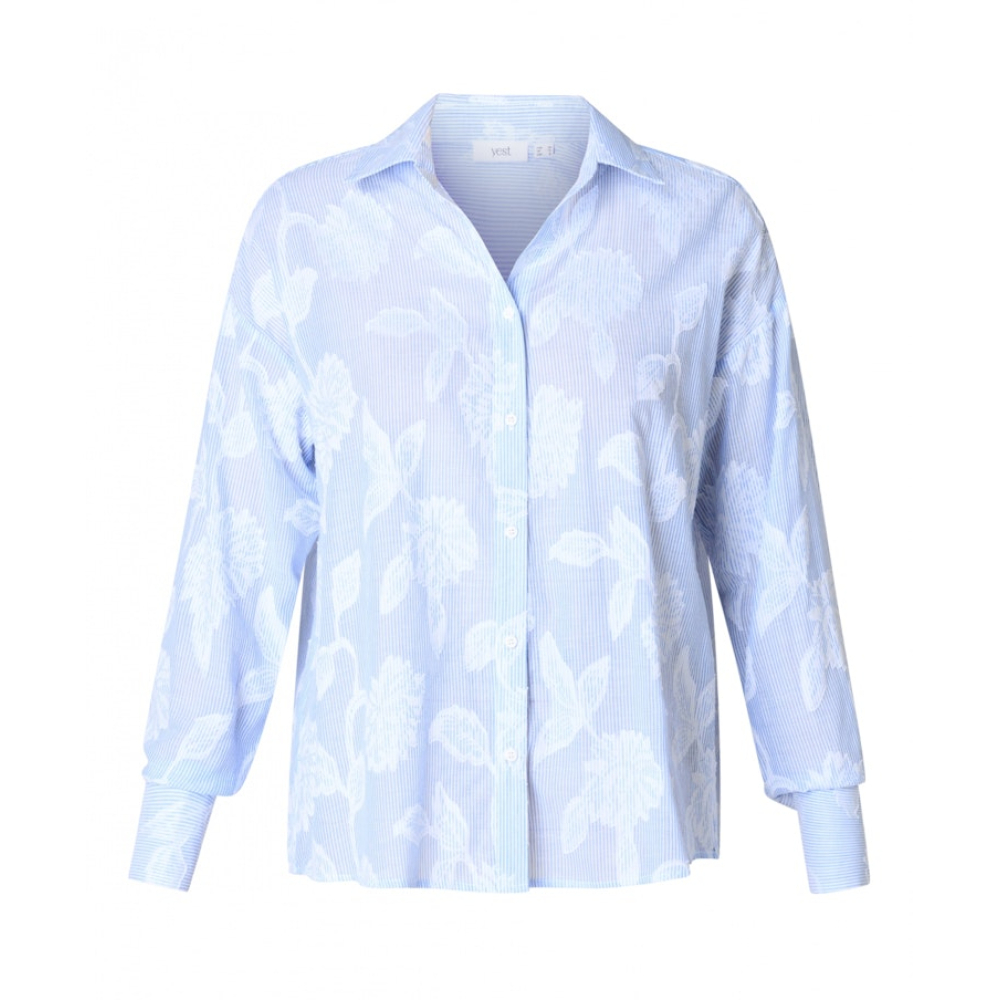 Deze Yest blouse heeft echt die frisse voorjaarsuitstraling. De blauwe streepjes en het zachte bloemenpatroon vormen samen een speels contrast, terwijl de brede manchetten voor een stijlvolle twist zorgen. De blouse voelt heerlijk luchtig en is het perfecte item voor dagen waarop je iets moois én comfortabels wilt dragen.