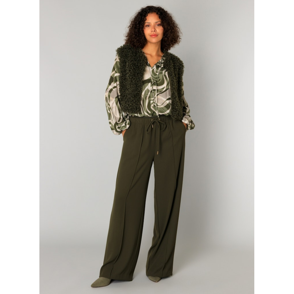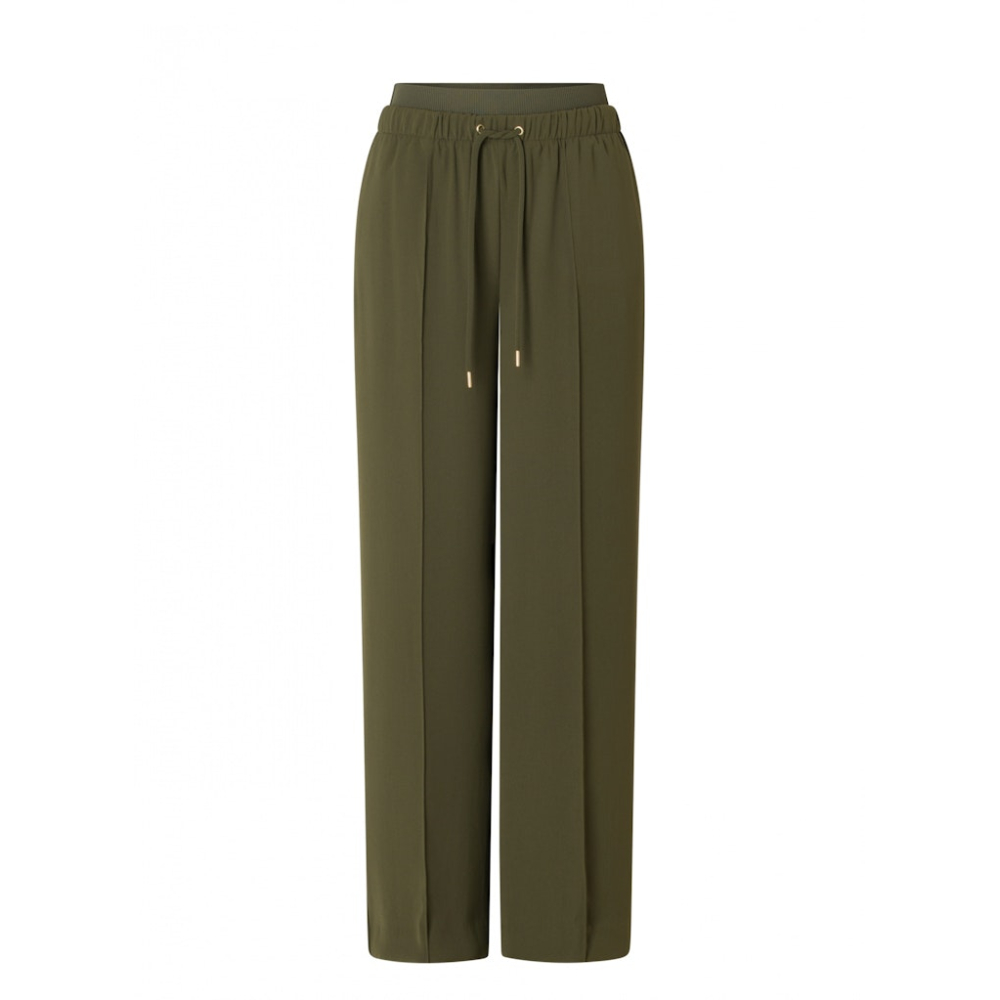 Deze gladde pantalon van Yest heeft een comfortabele pasvorm en een elastische tailleband met een subtiel detail voor extra draagcomfort. De naad over het middenbeen geeft een mooi silhouet.