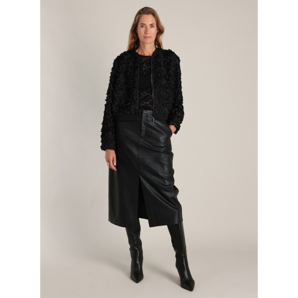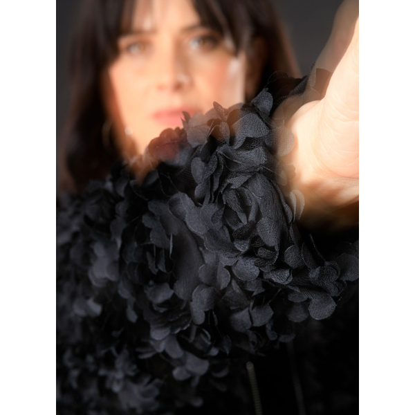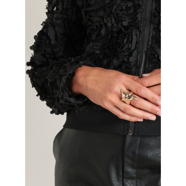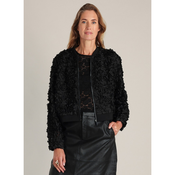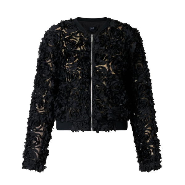 Dit korte jasje van Yest is bewerkt met rijke bloemenversiersels die diepte en textuur geven.