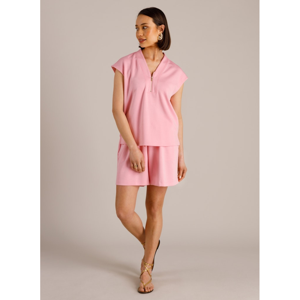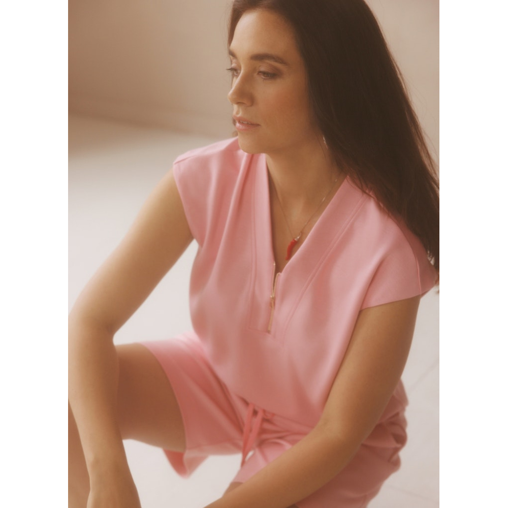 Een fijne mouwloze top van Yest die comfort en uitstraling combineert. De zachte, licht stretchy stof zit prettig en beweegt met je mee. De V-hals met rits geeft een sportieve twist, terwijl de kleur zorgt voor een frisse, energieke look. Perfect als set met de shorts.
