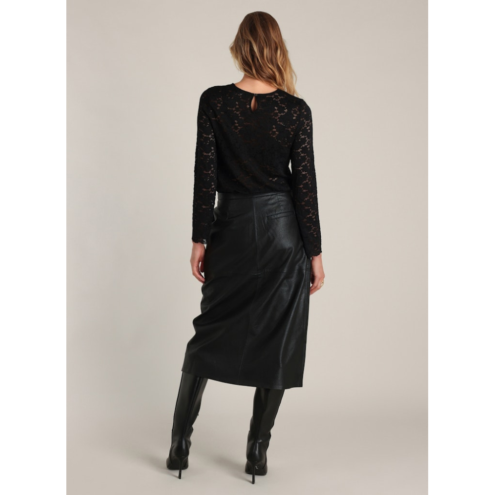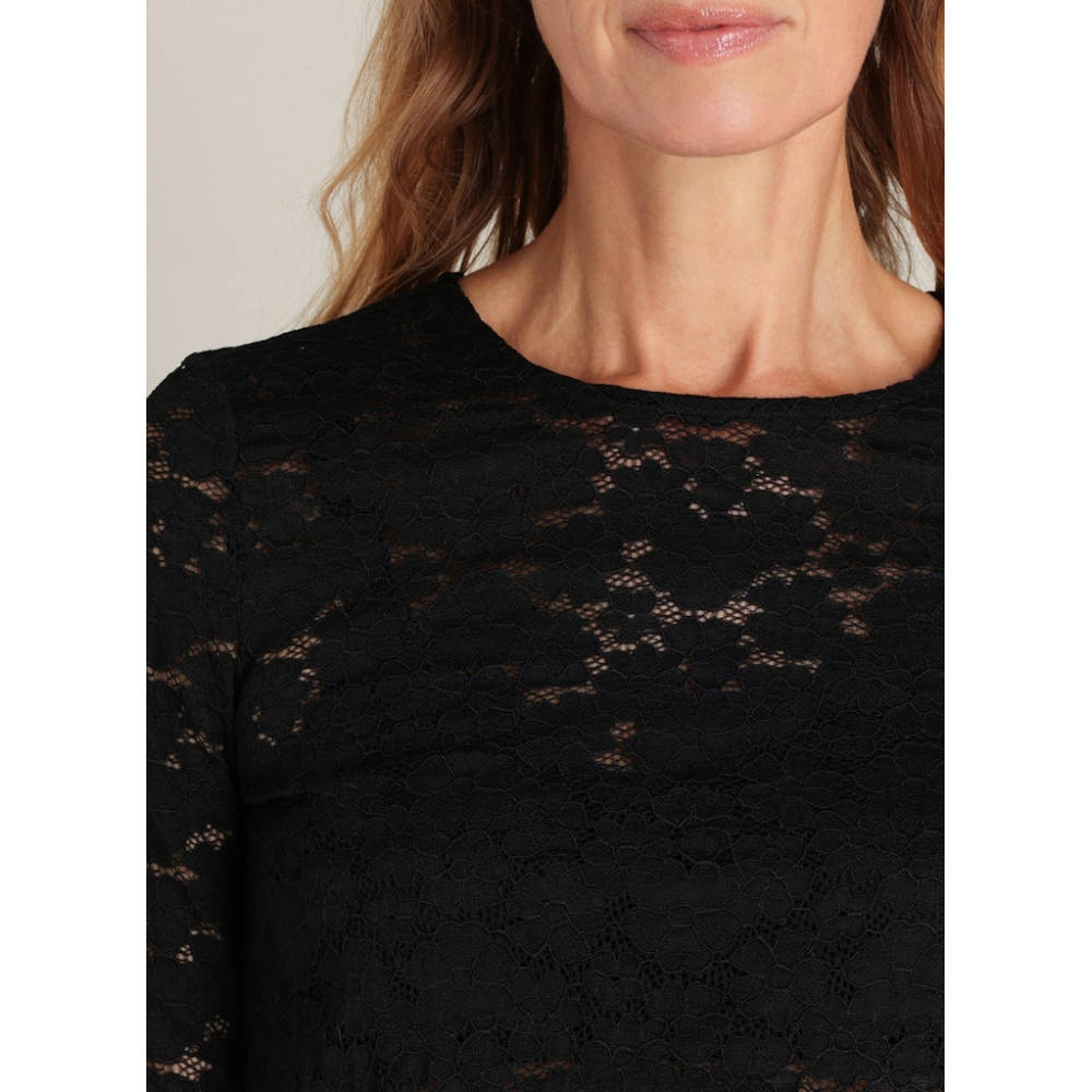 Deze kanten top van Yest is echt prachtig! Zacht, stretchy en met die geschulpte rand staat deze top niet alleen mooi op zichzelf, maar ook als accent onder een grove trui. Slim Fit Gemaakt van 92% nylon en 8% elastaan Kleur : Black
