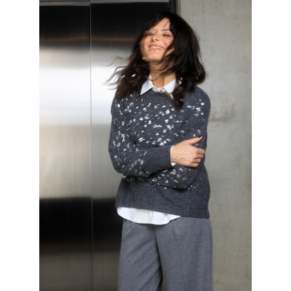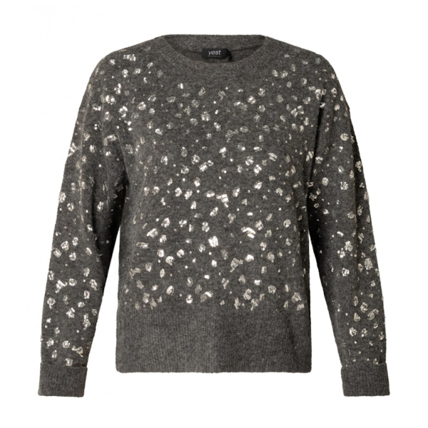 Deze trui van Yest voelt heerlijk zacht aan en de pailletten voegen een elegante shine toe.