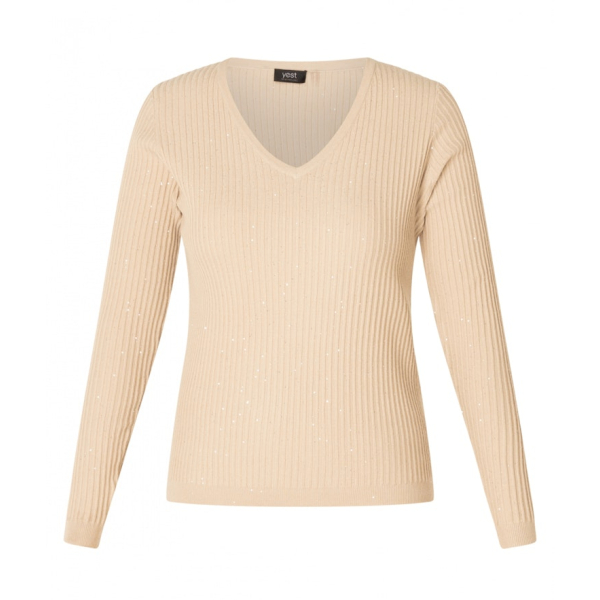 Dit truitje met een V-hals van Yest is ribgebreid in een dunne kwaliteit die soepel draagt en licht aanvoelt.