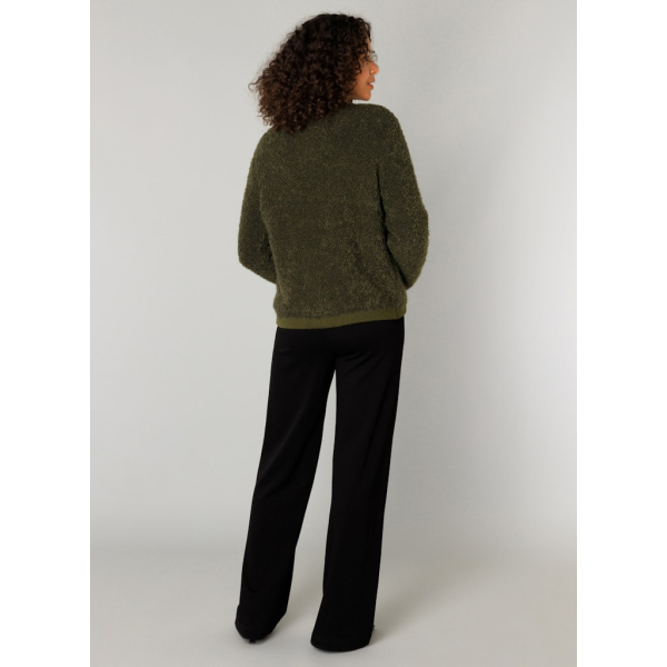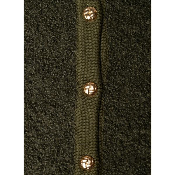 Het klassieke model met knopen krijgt een eigentijdse twist door de speelse structuur van het breisel.