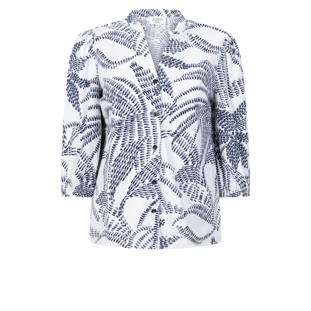 Prachtige blouse van Zoso in travel kwaliteit met een gespleten ronde hals en halflange mouwen met elastische boorden. Gemaakt van 80% polyamide en 20% elastaan Kleur : White Navy