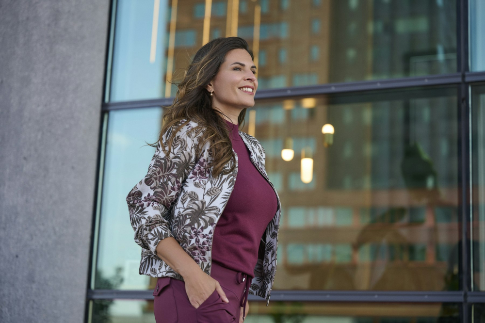 Gemaakt van 76% polyester, 22% viscose en 2% elastaan