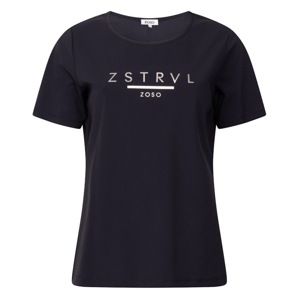 Super comfortabele top van Zoso in een travelkwaliteit met ronde hals en speelse print. Gemaakt van 80% polyamide en 20% elastaan Kleur : Navy