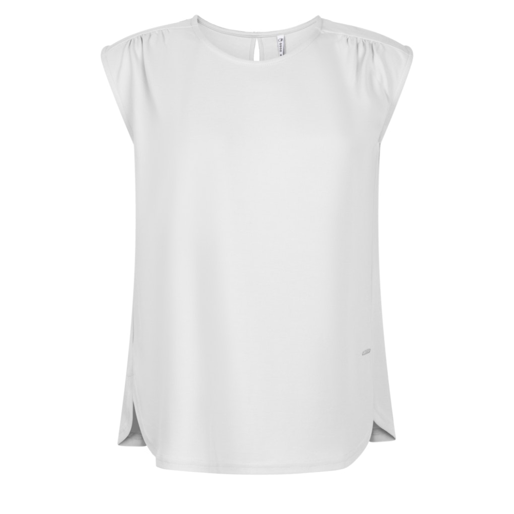 Luchtige zachte top van Zoso met een ronde hals. Deze mouwloze top heeft licht geplooide schouders voor een soepelvallend effect. Gemaakt van 46% modal, 46% polyester en 8% elastaan Kleur : Kit